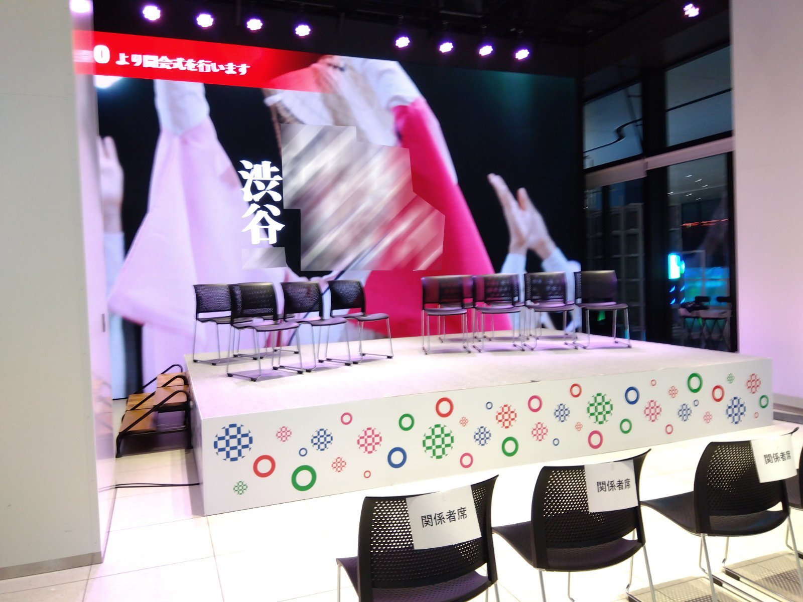 ステージの下部分を隠すケコミとして出力したスチレンパネルを取り付けたのとポスターやサインや手持ちパネルを注文していただきました。